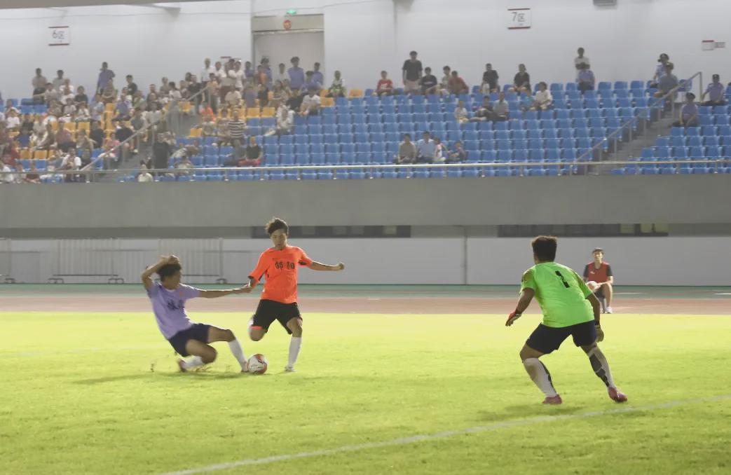 比赛当晚,看台球迷热情高涨、助威声不断,氛围浓烈。开场后,邵阳队迅速借主场优势发起猛攻。第15分钟,球队打出默契配合,唐于尧接队友助攻后抽射破门,帮助邵阳队1:0先拔头筹,现场球迷欢呼沸腾,掌声响彻场馆。