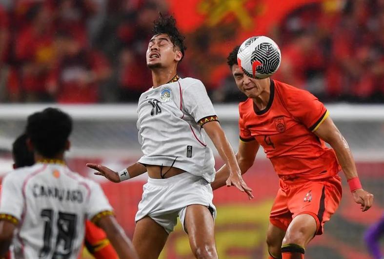 中国队4-3-3阵型进攻,安东尼奥将向余望放在中锋位置,拜合拉木、王钰栋打两翼。这是不了解球员特点,也低估了东帝汶球员的身体素质和对抗能力。向余望身体对抗、高空球能力都很一般,他适合打中锋吗?他更适合打影锋,拜合拉木放在中路更适合,向余望发挥背身拿球特点。